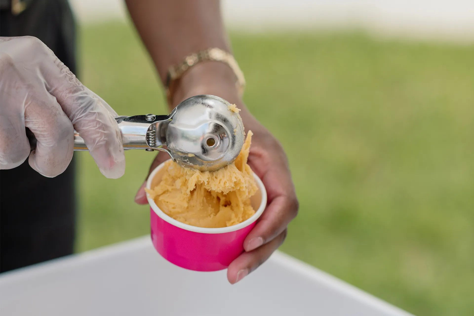 A grazing table by Kamper’s Kitchen served as both a visual centerpiece and a culinary delight, displaying an artful mix of cheeses, fruits, spreads, and mixed veggies. To top it off, Urbanica Events’ gelato cart was a guest favorite, serving mango and pistachio scoops as a sweet finale.