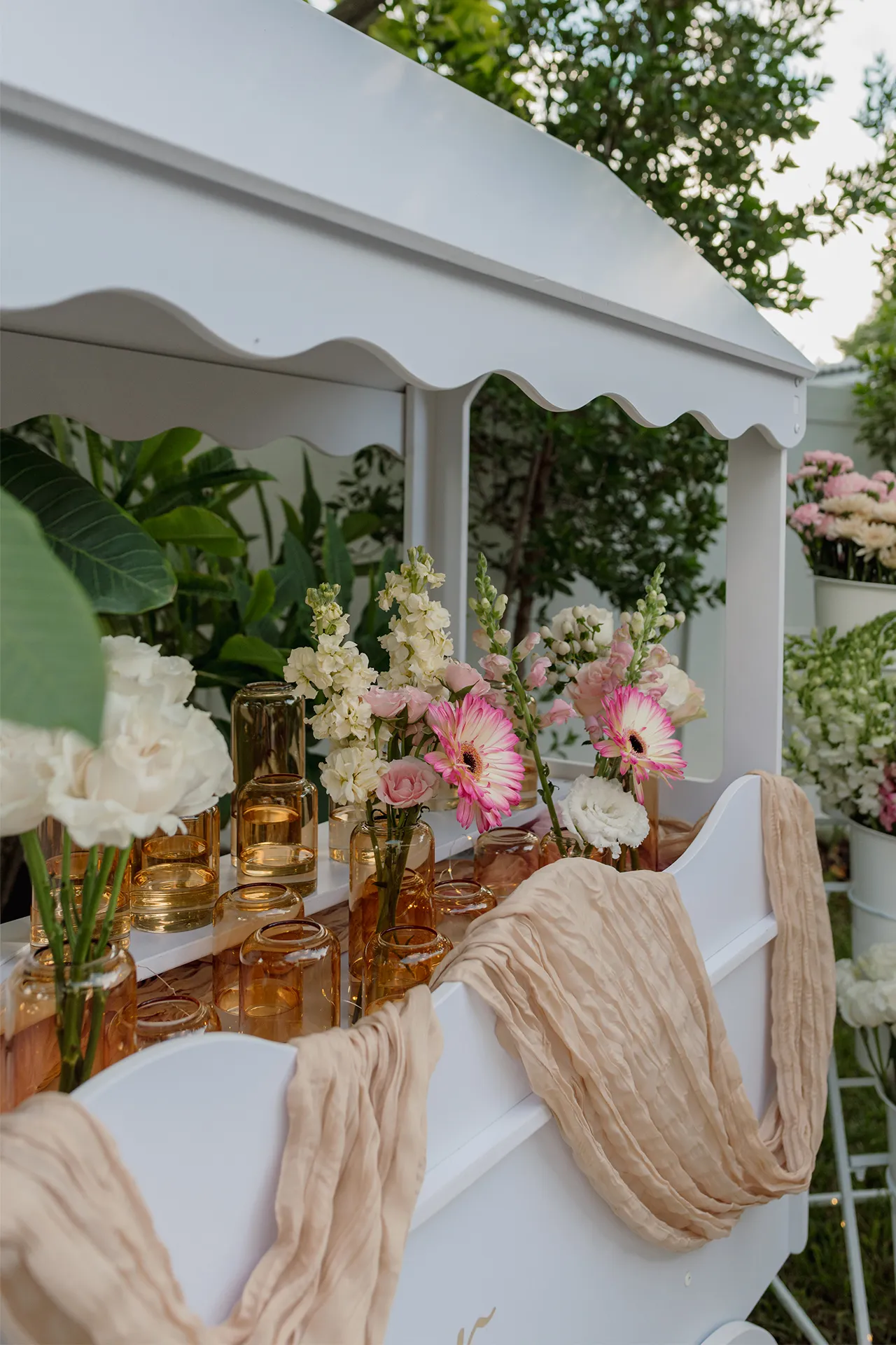 Nearby, the flower bar by Flora was buzzing with creativity. Florencia and Alejandro hand-assembled custom bouquets for each guest, which included beautiful blooms and greenery, adding a fresh and fragrant touch to the evening.