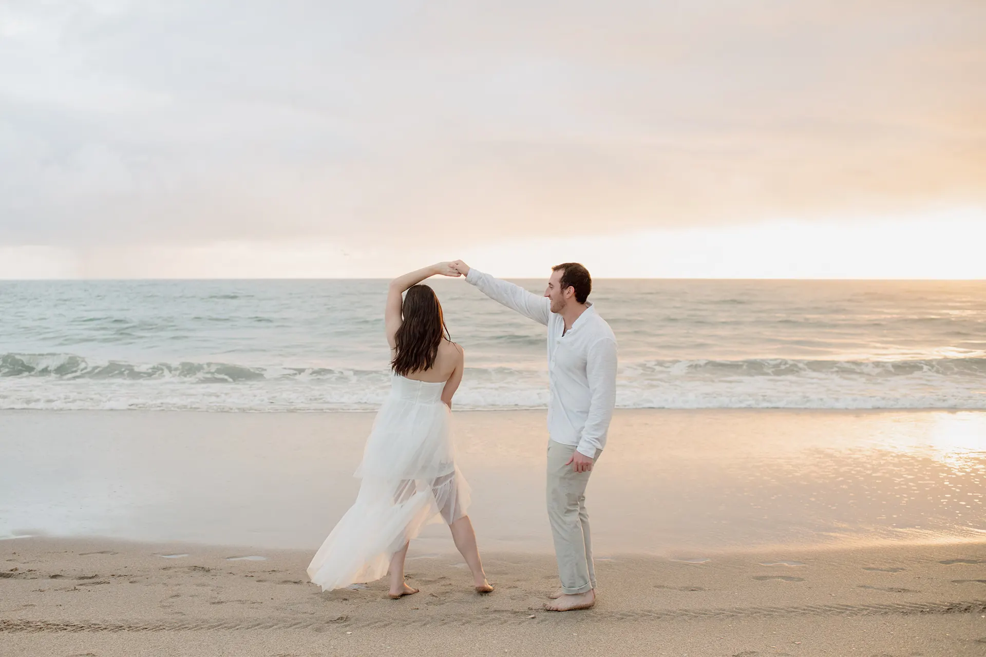 There’s something special about sunrise sessions on Florida’s east coast. The soft light, empty beaches, and quiet moments just before the day begins offer a unique atmosphere that’s perfect for capturing natural, candid moments—especially for couples.