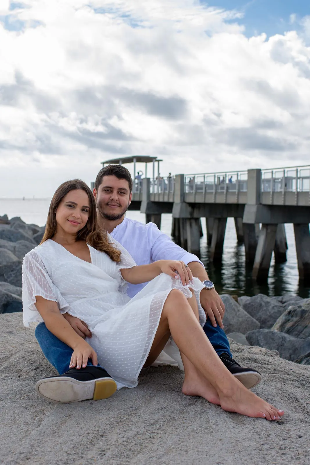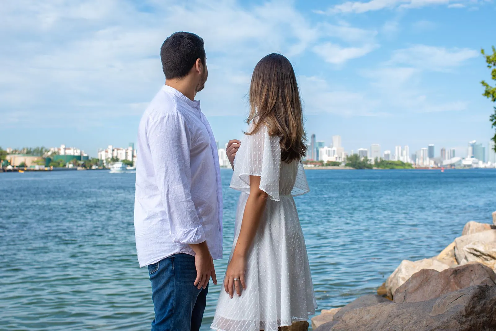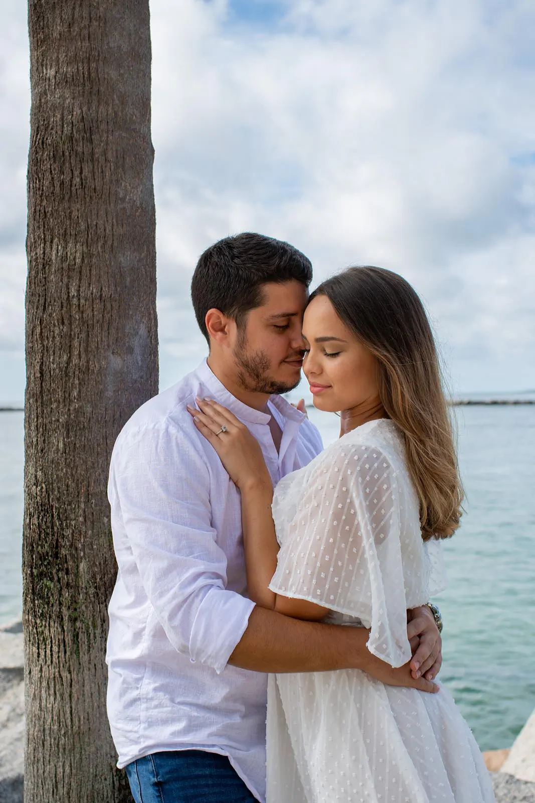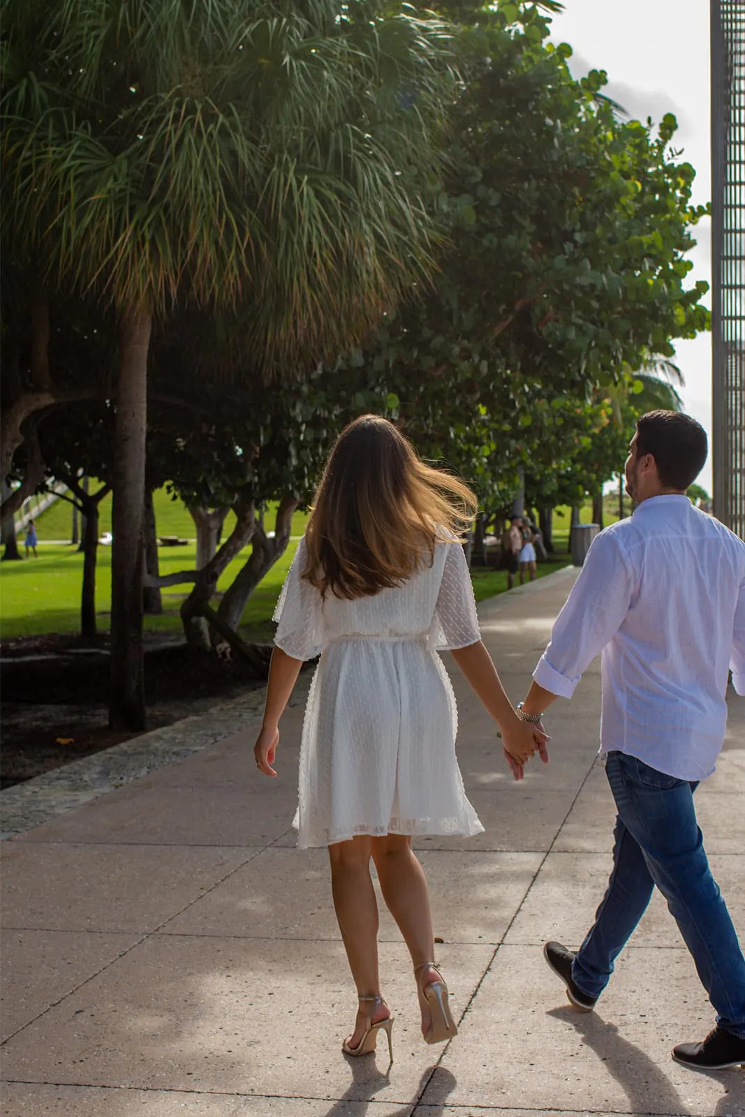 For their engagement session, we decided on South Pointe Park in Miami Beach. This location is perfect for couples looking for a mix of serene beachscapes and iconic city views. With its unique blend of tropical greenery, a sparkling pier, and endless ocean views, it’s hard to imagine a more romantic setting.