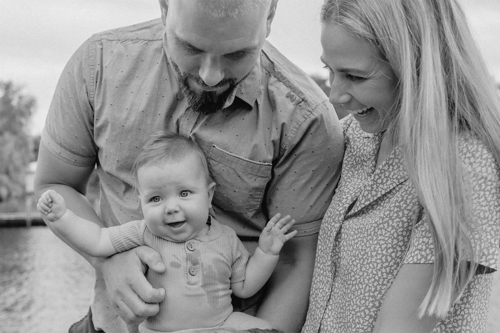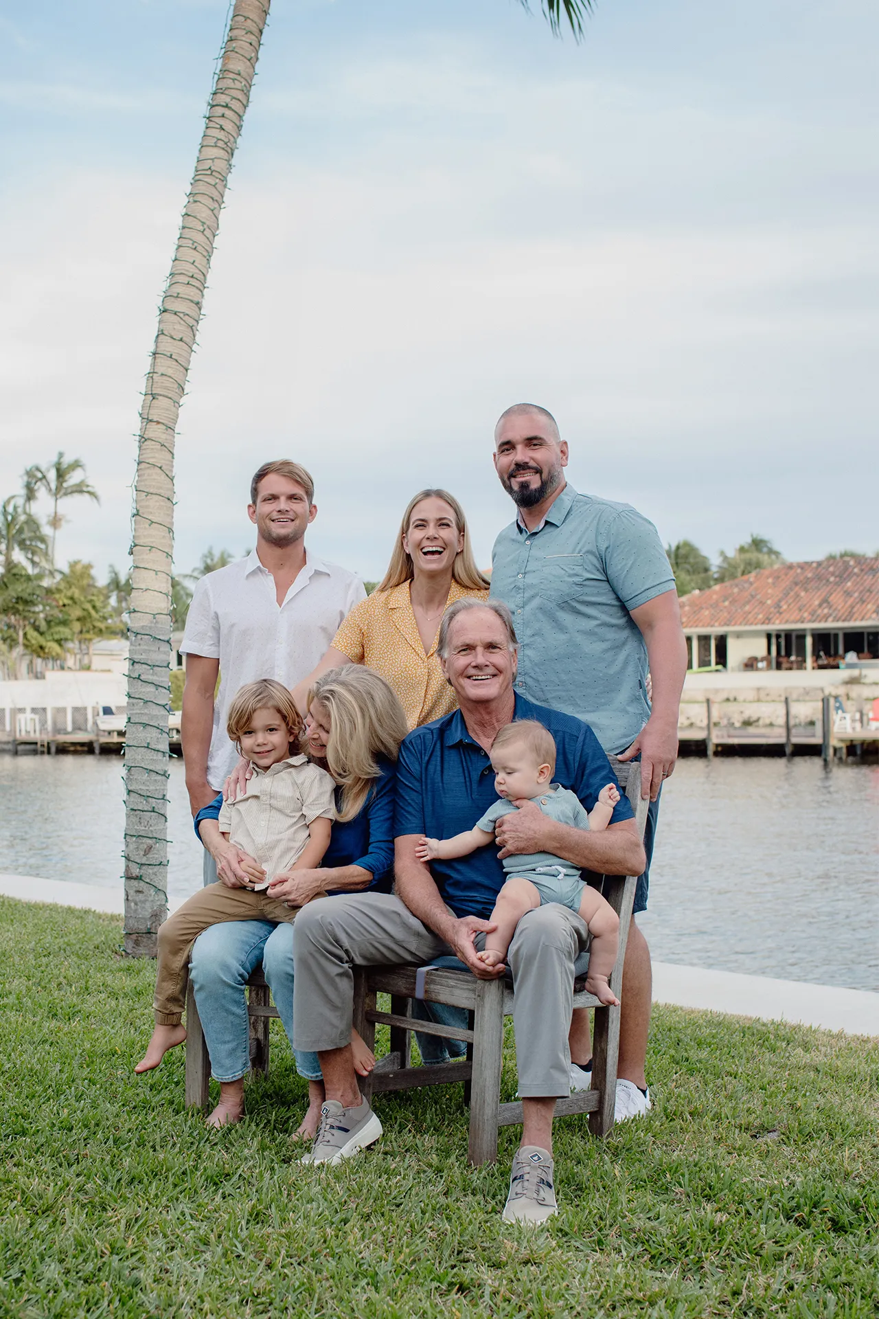 We started with traditional poses, gathering everyone together for classic family portraits. As the session went on, we transitioned into a candid style, capturing moments of natural laughter, hugs, and play. Their beautiful waterfront backyard provided a stunning backdrop, blending the warmth of their family bond with the beauty of their surroundings.