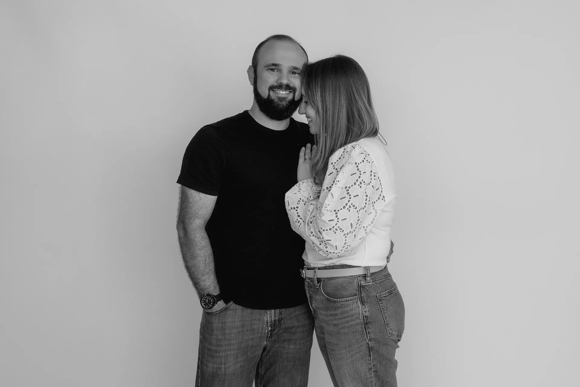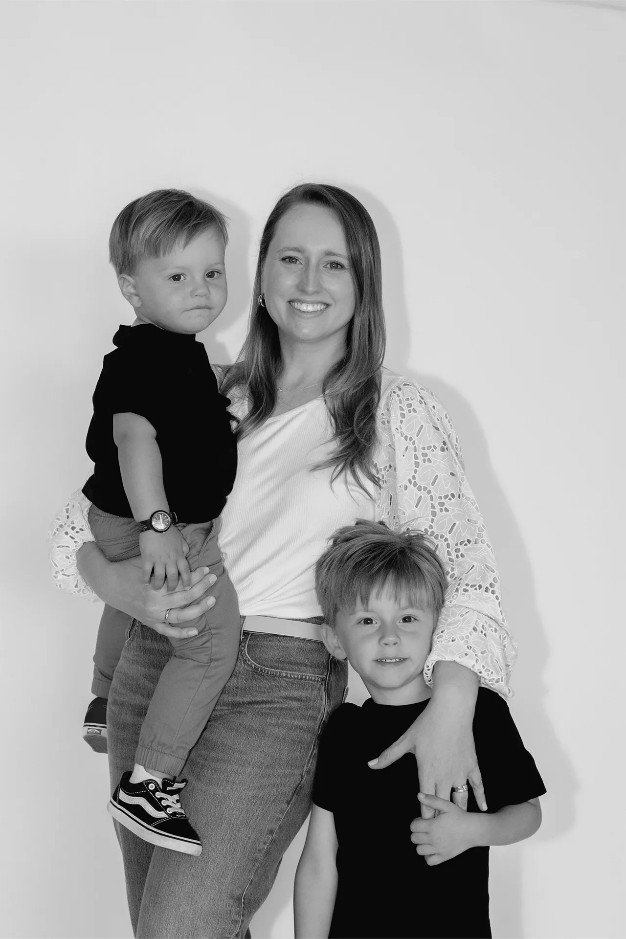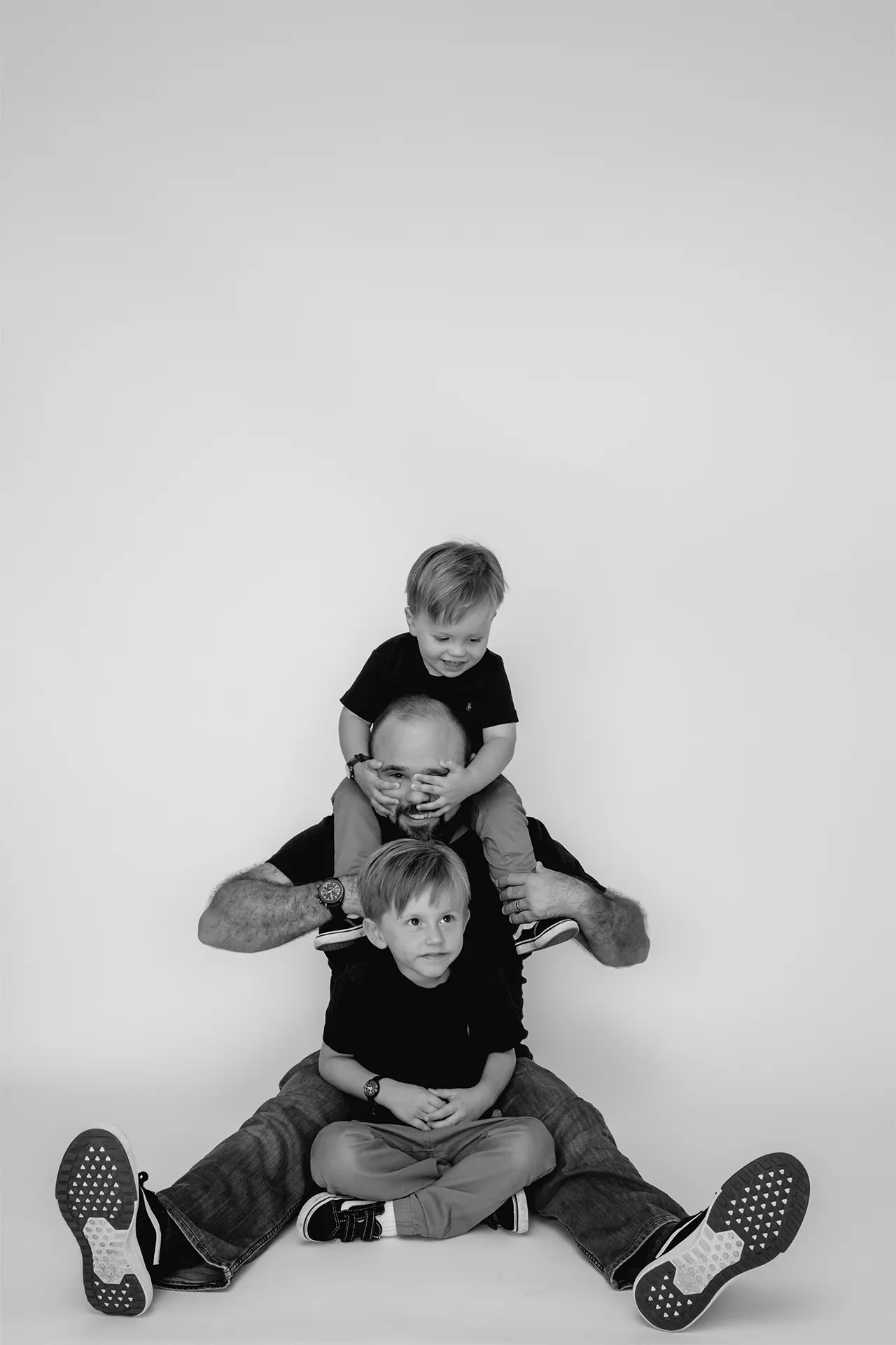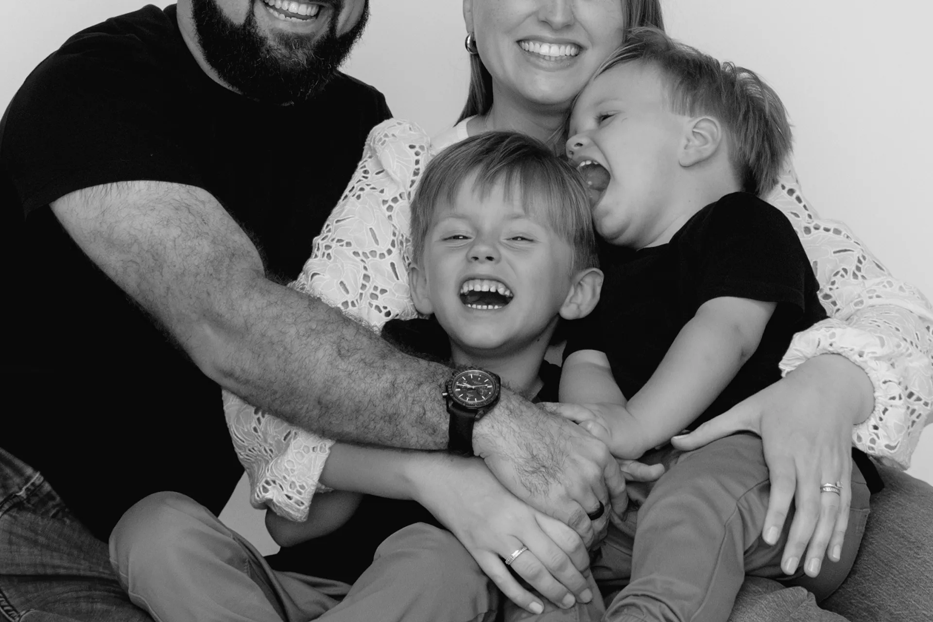 I brought a clean white backdrop to set the tone for timeless, bright images that focus on connection and expression. The session blended more traditional posed portraits with those candid, heart-melting in-between moments that truly tell the story of who they are as a family.
