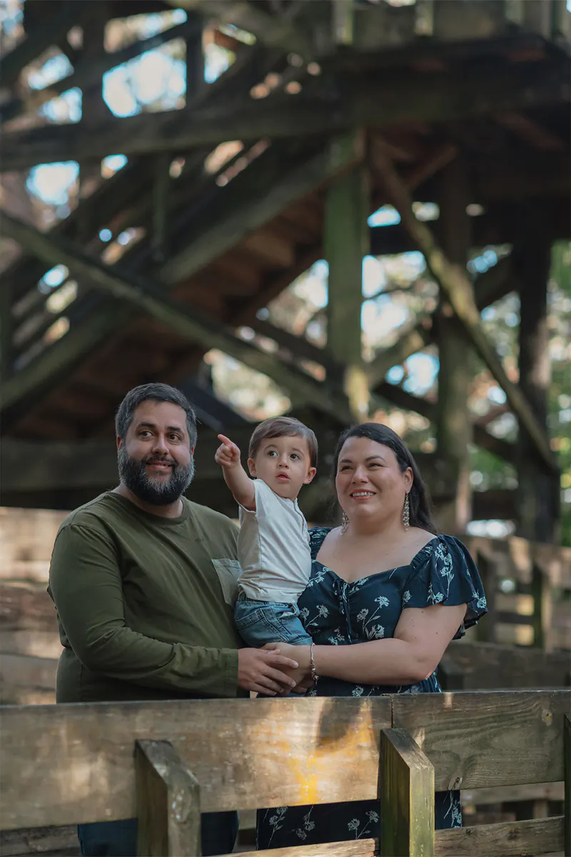 As a specialized Tree Tops Park family photographer, I find that this location offers a unique landscape for photo sessions, from lush greenery and winding wooden boardwalks to towering oak trees and scenic observation towers. It creates a beautiful, natural setting that feels peaceful and timeless in every image. We met at the park on a quiet Saturday morning, which gave us plenty of space to explore and create relaxed, natural images.