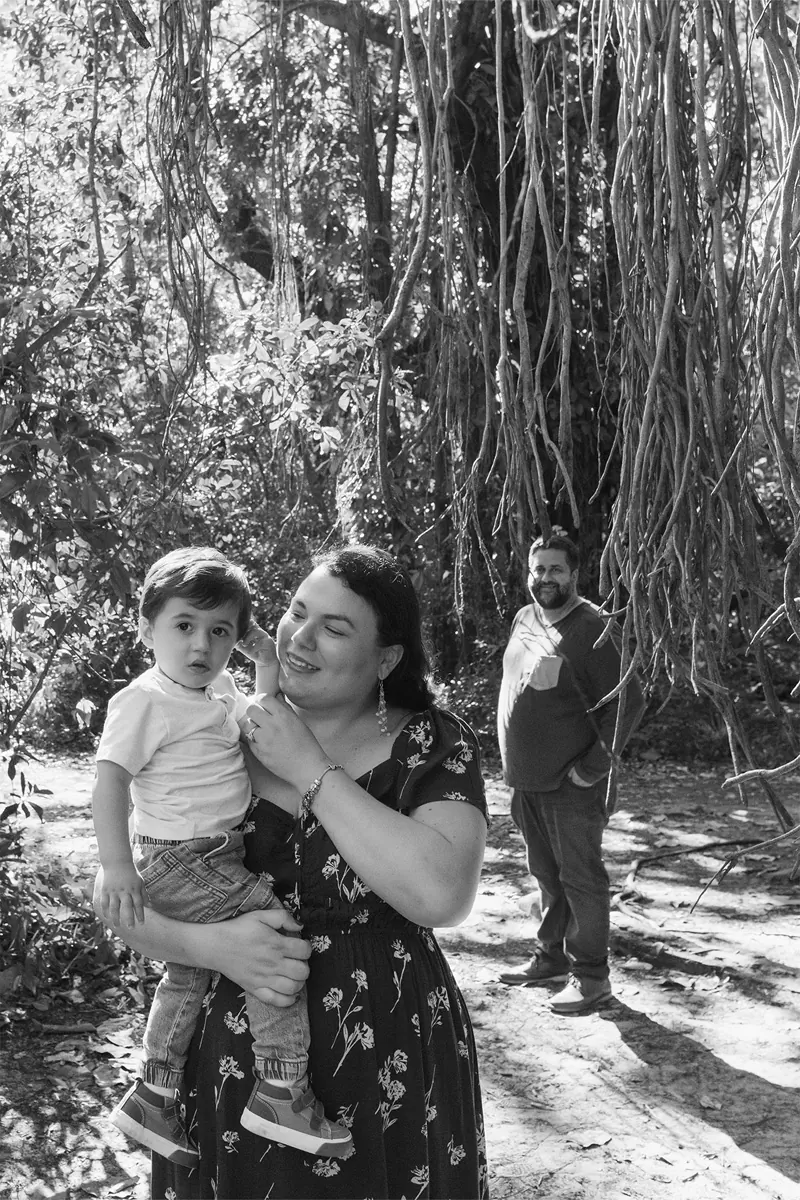 The neutral tones and soft textures they chose worked perfectly with the natural greens and warm wood tones of the park. This approach is similar to what I recommend for my maternity photography sessions, where soft colors help keep the focus on the connection and the setting.